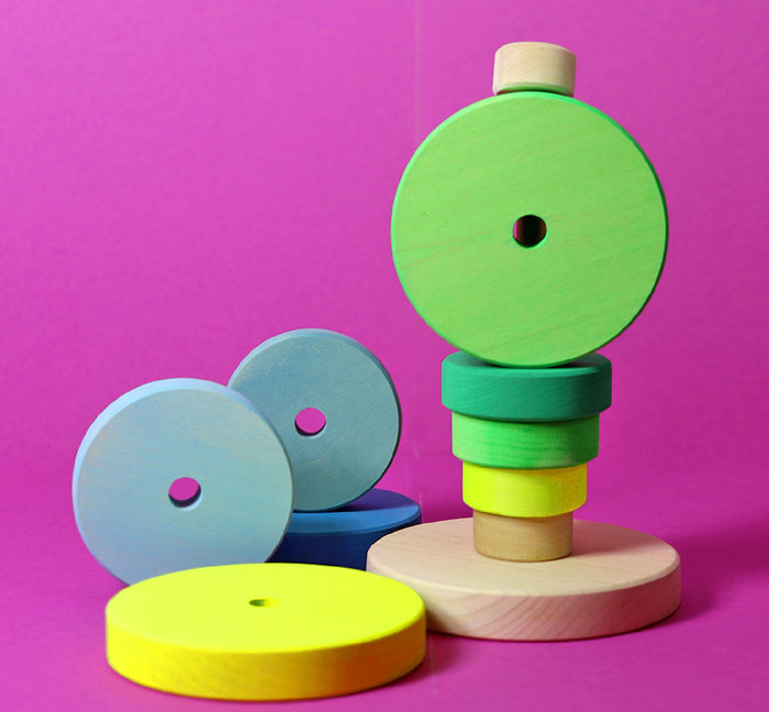 Seit 2006 führt die Familie Grimm die Holzmanufaktur in der Schwäbischen Alb. Liebe, Leidenschaft, Hingabe und Bewunderung für Natur und Mensch zeichnen GRIMM'S Philosophie und damit auch die Produkte aus. Jeder Mensch ist einzigartig und genauso auch jeder Baum, jedes Blatt und jedes Holzspielzeug. Qualitativ hochwertige Produkte aus Holz, die die Kinder für lange Zeit begleiten und prägen, helfen dabei, dass sich die Kids so individuell wie möglich entwickeln und ihre Kreativität ausleben können. Kinder sollen sich von der Umgebung lösen und selbst frei entfalten können, dabei in bunte, kreative Welten abtauchen und die Kindheit in vollsten Zügen genießen. Dem Entdeckergeist werden keine Grenzen gesetzt. Einfaches, abstraktes Design trifft auf fantastische Spielvielfalt. Alters- oder geschlechterspezifische Vorgaben werden außer Acht gelassen; das zeitlose Holzspielzeug ist für alle da. Mit den klassischen GRIMM'S Regenbögen lassen sich beispielsweise Häuser, Tunnel, Brücken oder Puppenmöbel bauen. Der Fantasie sind keine Grenzen gesetzt. Auch lassen sich die Holzspielzeuge ganz wunderbar mit anderen Spielzeugen kombinieren. Ganz nach dem pädagogischen Ansatz der Montessori-Lehre regen die Spielzeuge die natürliche Freude am kreativen Lernen an.